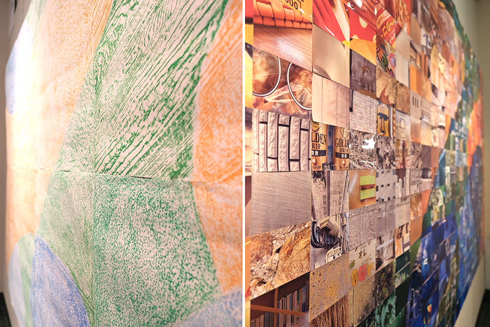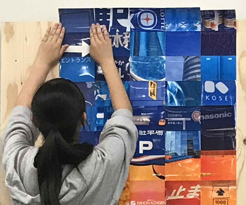 「コラージュ」づくりは、普段見かける看板や、机の上の画材、道路脇の草木、隣の友達の今日の服......、そんな身近な風景がとってのリアルな「私らしく生きる長野市」です。ボケたりブレたりなんということはない学生の日常を切り取った600枚ほどの写真を貼って貼って、つくりました。